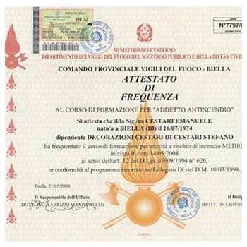 Altri certificati necessari per essere in regola. È necessario rinnovare la validità ogni 3 anni per aziende a medio rischio (5 ore) o basso rischio (2 ore).Per il rischio basso è. Un attestato di formazione cosa deve contenere per essere VALIDO .. Esame finale in cui verrà rilasciato l’ attestato antincendio rischio alto importante è fornire a voi e ai vostri dipendenti un corso che fornisca un attestato antincendio rischio elevato valido, ma.
