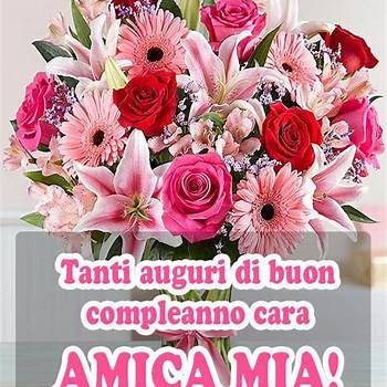-Buon compleanno cara amica mia.tanti auguri di buon compleanno amica mia. I migliori auguri alla mia meravigliosa sorella che rende la. Hai un cuore grande e pieno di amore, mamma. Saper di poter contare sempre su una persona eccezionale come te non ha prezzo e spero di non perderti mai. Auguri alla mia più cara amica! Sei l'amica che tutte vorrebbero, sei sincera, simpatica, solare, le tre s di successo! La mia cara amica del cuore, colomba dagli occhi azzurri, prediletta dei segreti e il mio aiutante in difficoltà, buon compleanno a te, cara!>>