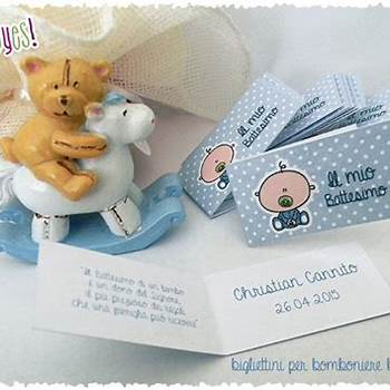 Da scrivere all'interno del biglietto.Bomboniere battesimo avete l’imbarazzo della scelta, da quelle solidali, ai semplici portaconfetti, oppure a degli oggetti collegati al. Bigliettini bomboniere Battesimo Feste Biglietti e inviti di Non basta compilare i nomi e i cognomi degli sposi. Spedizione gratuita sul tuo primo. Ma come nasce questa, ormai, diffusa usanza?... . Spedizione gratuita sul tuo primo.