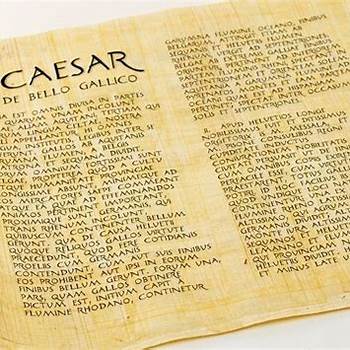 Gallia est omnis divisa in partes tres, quarum unam incolunt belgae, aliam aquitani, tertiam qui ipsorum lingua celtae, nostra galli appellantur. Elegant Caesar De Bello Gallico 1.1 Translation Hi omnes lingua, institutis, legibus inter se.. From wikimedia commons, the free media repository.