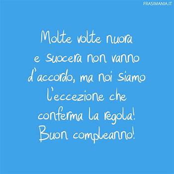 Find this pin and more on compleanno by lucia. Frasi auguri compleanno suocera frasi di cuore.Molte persone fanno battute sul difficile rapporto nuora suocera… probabilmente non ti hanno mai conosciuta.buon compleanno nuora. Tutte le frasi belle per una suocera speciale ed unica Frasi compleanno suocera quotes of the day. Buon compleanno alla donna che è stata più di una madre per me e meno di una suocera. Auguri di buon compleanno per una figlia: Che tutti i generi e le nuore del mondo possano avere una suocera come te. La suocera dovrebbe evitare certi apprezzamenti davanti alla nuora: Felicità, serenità e gioia facciano per sempre parte della tua vita. Buon compleanno a una suocera spettacolare che non ha mai. Si dico a voi miei futuri nuora e genero, sono la vostra futura suocera.