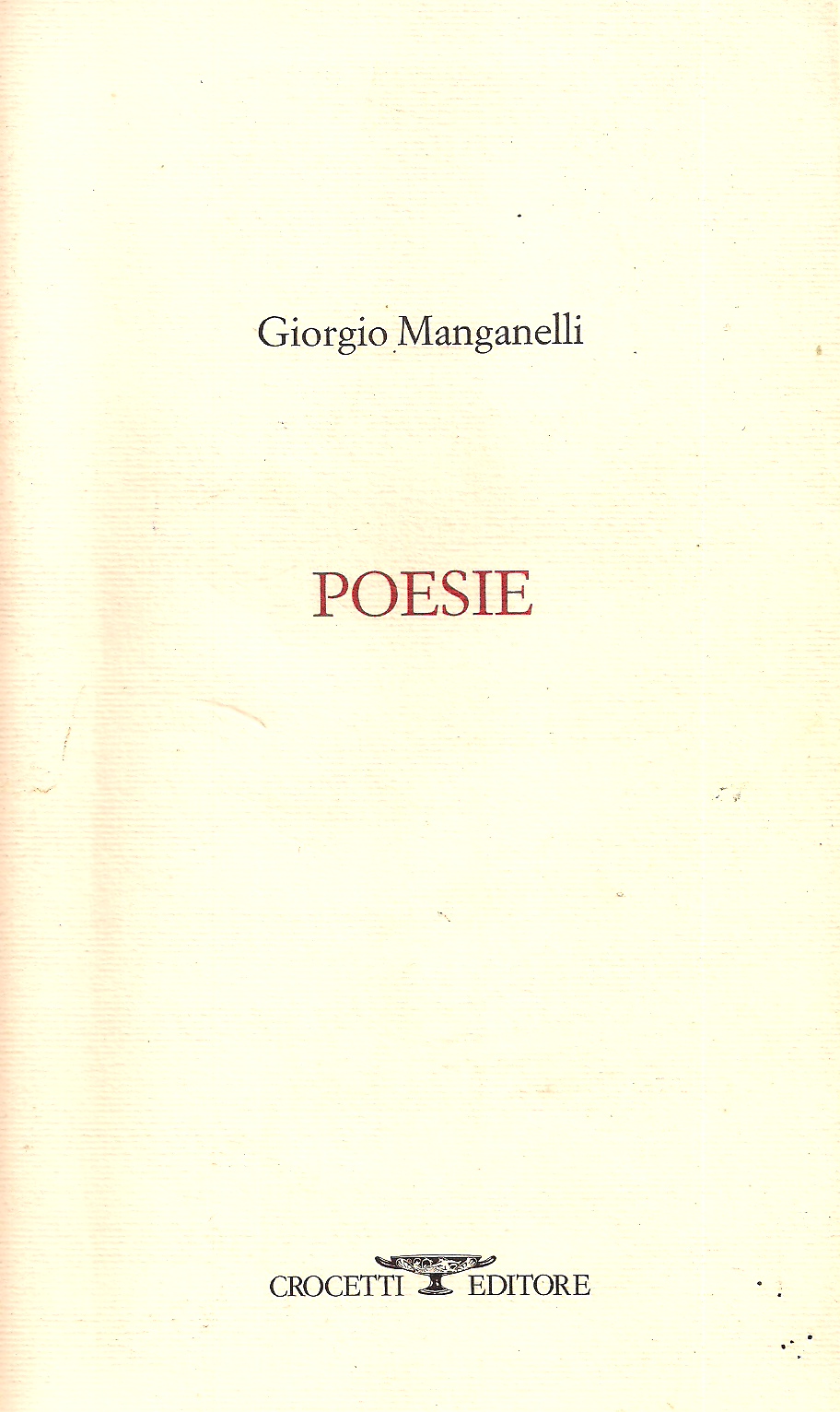 Giorgio Manganelli Poesie Crocetti Scelta completa Pack Now - O tu che parti con una grossa valigia e due occhi verdi, con simone weil e due seni duri; 0 ratings 0 want to read; [giorgio manganelli, poesie, milano, crocetti 2006, p. Giorgio Manganelli Poesie Crocetti Ses nombreuses interviews ont été rassemblées en 2001 par roberto deidier, sous le titre la penombra mentale. Si tratta delle poesie di giorgio manganelli, il prosatore flamboyant ed eccentrico della fosca e tribolata hilarotragoedia. Giorgio manganelli, poesie (milano, crocetti 2006).