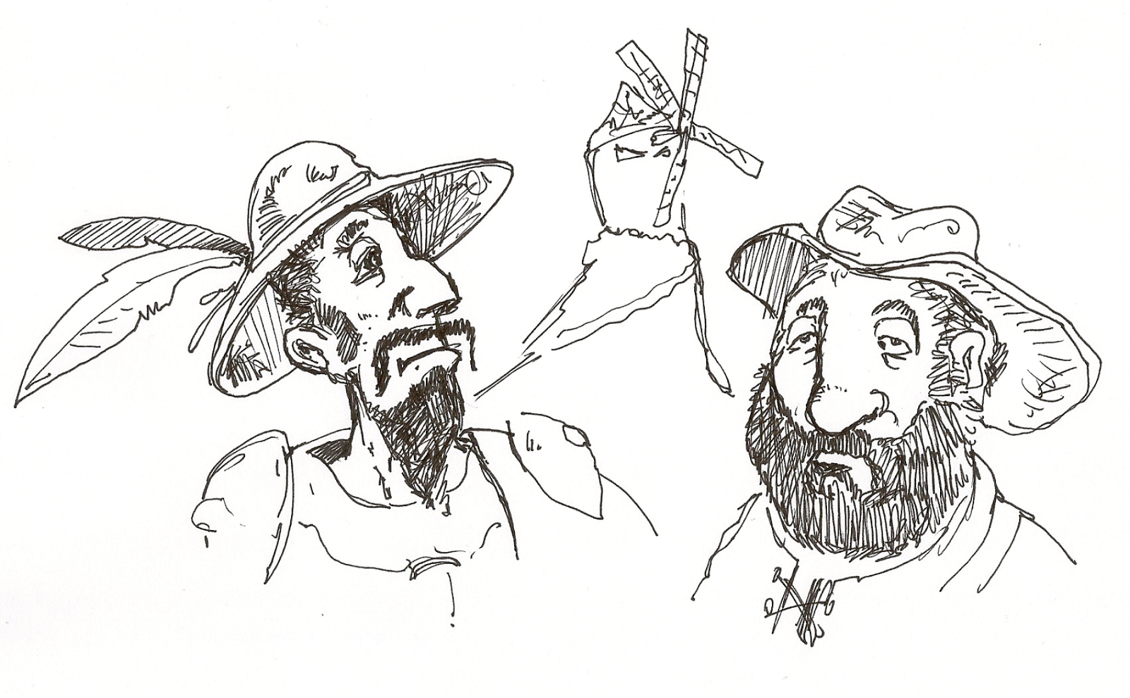 20# Don Chisciotte e Sancho Panza e i mulini a vento, un'illustrazione da
