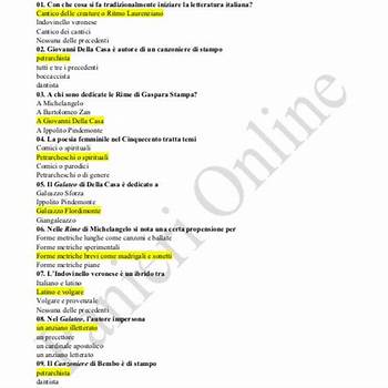 "N° domande aperte 102 n° domande chiuse 299. Nel rinascimento dominano gli ideali di eccesso, irregolarità e bizzarria perfezione. Test letteratura italiana tonelloen letteratura italiana..
