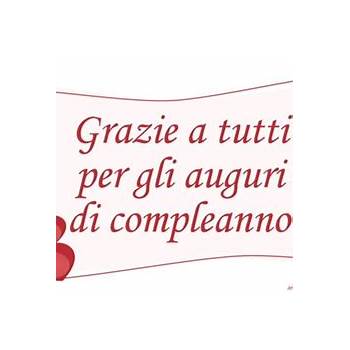 Grazie a tutti voi per gli auguri di compleanno, per.Oggi vi proponiamo alcune frasi di ringraziamento per gli auguri di buon compleanno, da inviare via facebook, messaggi whatsapp e non solo... Grazie a tutti per gli auguri di Compleanno BuongiornoImmagini.it Il compleanno non avrebbe avuto senso senza un amico come te con cui festeggiarloti ringrazio per gli auguri il regalo e la tua stupenda presenza. E’ un regalo che custodirò gelosamente. Per augurare buon compleanno in inglese, vi offriamo qui di seguito alcune idee:. Grazie per gli auguri, sei sempre presente e attento e ne.... Non dimenticheremo mai la splendida ospitalità.